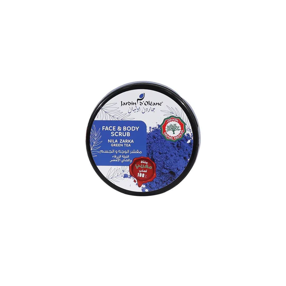 جاردن اوليان مقشر للوجه والجسم بالنيلة الزرقاء والشاي الأخضر (Jardin D’Oleane Face and Body Scrub with Nila Zarka and Green Tea) – 500 مل