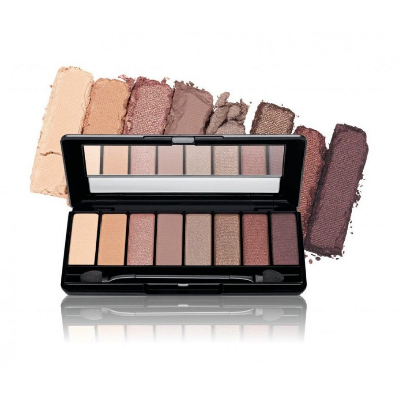 تنوع في اللمسات النهائية: يجمع بين الألوان المطفية (Mattes) التي تستخدم كأساس وانتقال، والألوان الشيمر (Shimmers) التي تعطي لمعة جذابة في وسط الجفن.